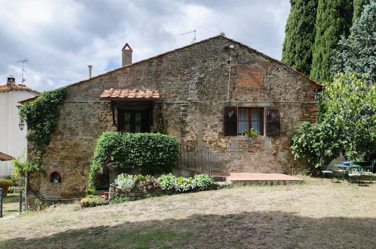 Situated on the site of an ancient monastery, in an elevated and secluded location, the villa opens onto a large garden surrounded by cypress and pine trees. A gate from the garden leads to the swimming pool, surrounded by olive trees and offering enchanting views of the Val di Chio.