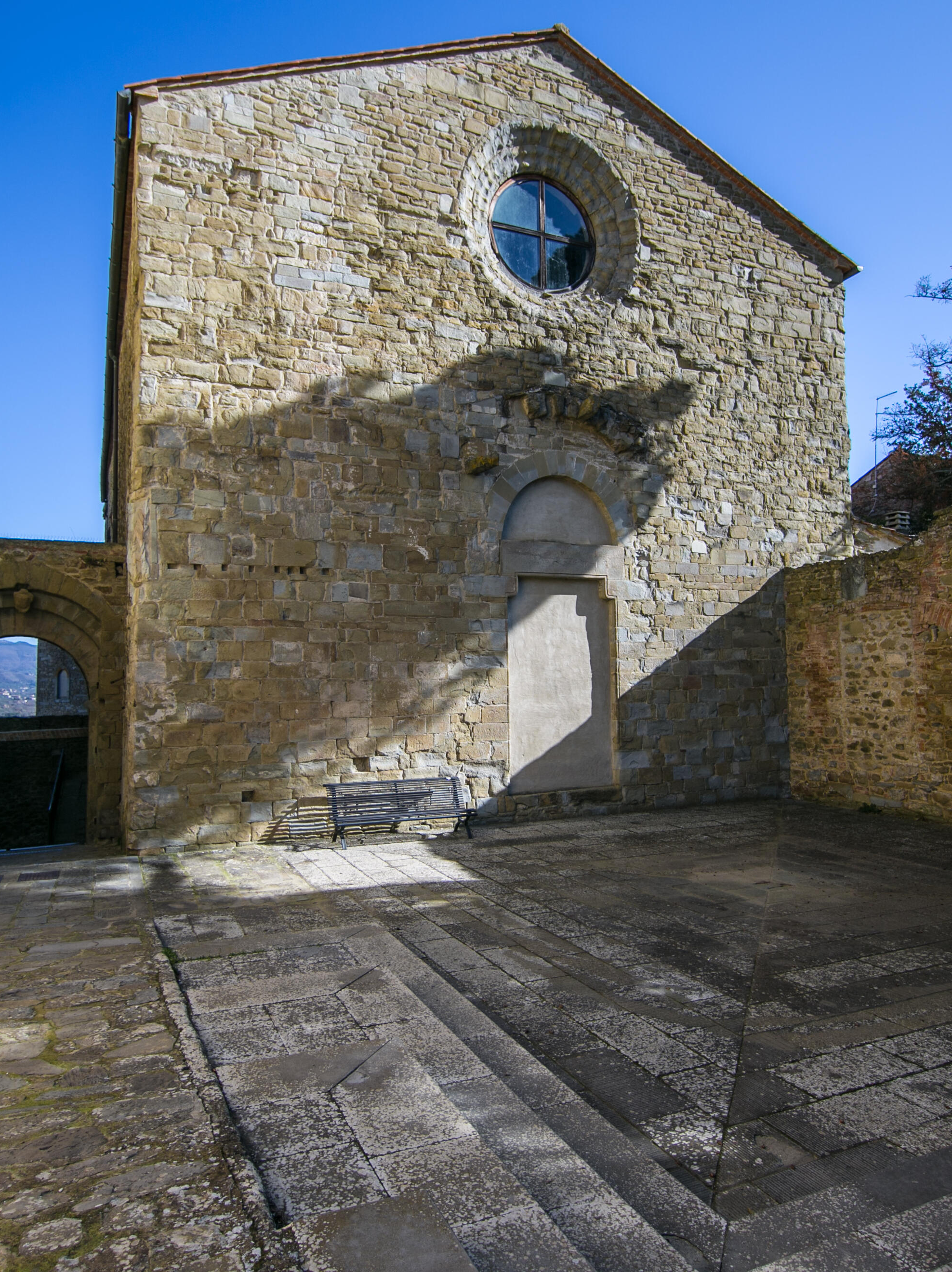 La struttura copre edifici ben più antichi: nella cripta, durante i lavori di restauro sono stati infatti scoperti diversi allineamenti murari in grossi blocchi squadrati pertinenti alla cinta muraria etrusca (IV secolo a.C.).