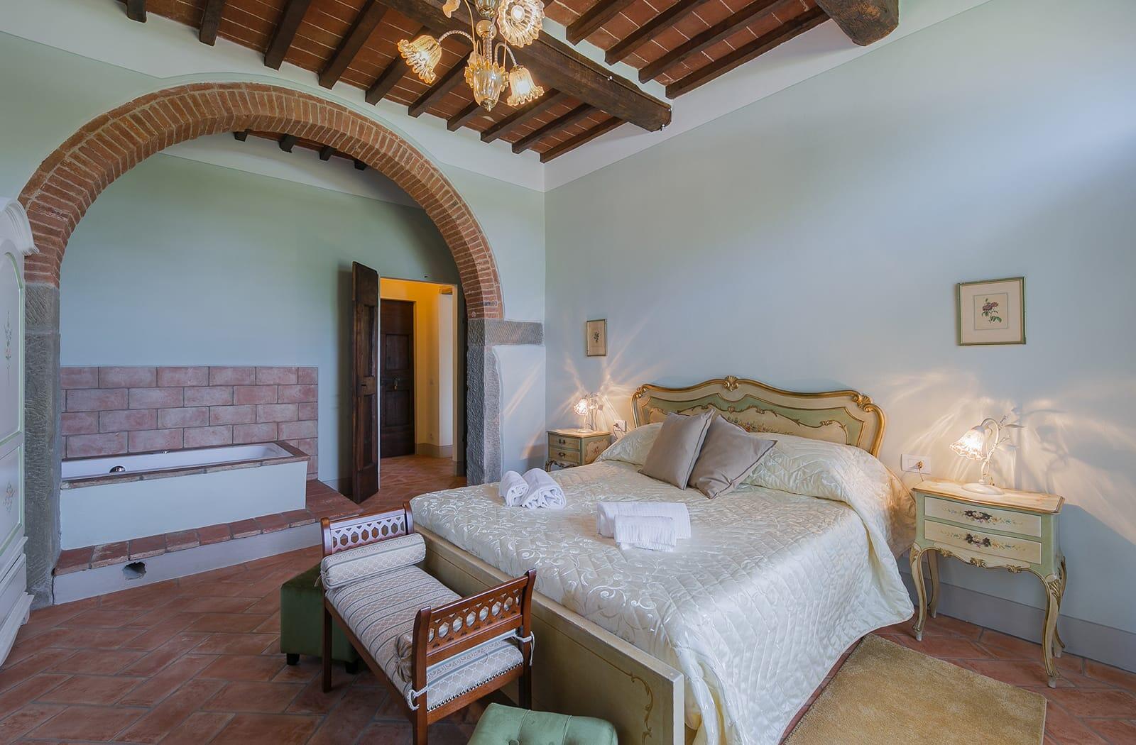 Villa de' Michelangioli è un'elegante tenuta Leopoldina in cima ad una collina della Val di Chiana con una splendida vista sulla campagna toscana.